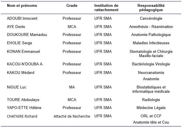 - Directeur coordonnateur du DES : Professeur TANON-ANOH Marie - Josée