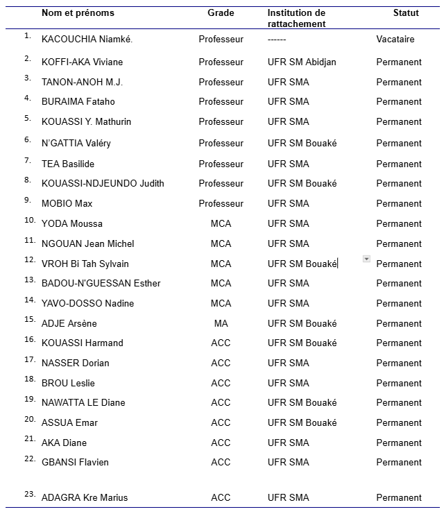 - Secrétaire -Trésorier : Docteur YAVO-DOSSO Nadine